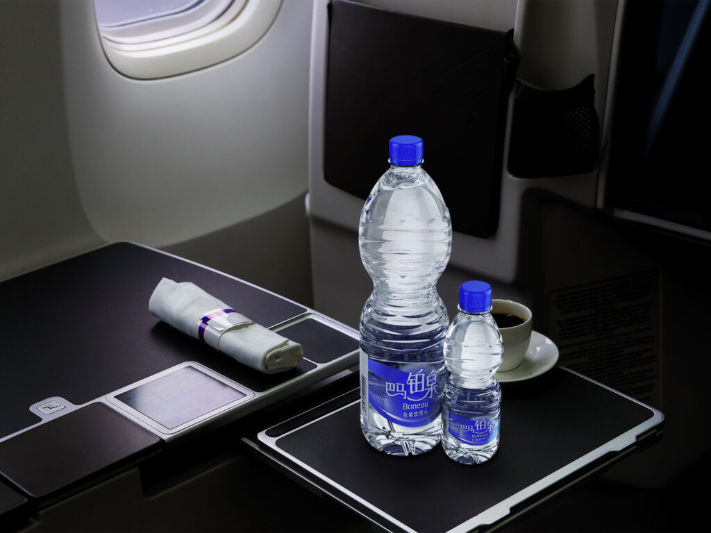 Boneau, l’acqua che sgorga nella contea di Bama, situata nella regione del Guangxi nel Sud-Est della Cina, è rinomata per essere un’acqua ricca in ioni negativi, conosciuti anche come vitamine dell’aria. I loro benefici sono presto detti: gli abitanti della contea di Bama sono conosciuti come i più longevi della Cina e la contea stessa è definita come il “paese della longevità e degli uomini saggi”. La China Eastern Airlines, terza compagnia della Repubblica popolare Cinese, con oltre 580 aerei, 177 linee internazionali e 1062 rotte totali, ha scelto proprio quest’acqua per dimostrare ai propri passeggeri un interesse concreto verso la loro salute e il loro benessere e ha chiesto all’azienda Bama Boneau di imbottigliarla in un packaging che ne permettesse una fruizione semplice anche in alta quota. Per questo PET Engineering ha proposto un packaging dalla zona presa ben strutturata, irrigidita da un motivo discontinuo e alternato di piccoli ovali, che permette alla bottiglia di reggere, senza deformarsi, alla pressione e alla temperatura che si presentano nelle aree di stivaggio durante il volo. Allo stesso tempo la presa robusta facilita l’utilizzo della bottiglia sia da parte del consumatore finale che del personale di bordo durante i servizi di ristorazione.