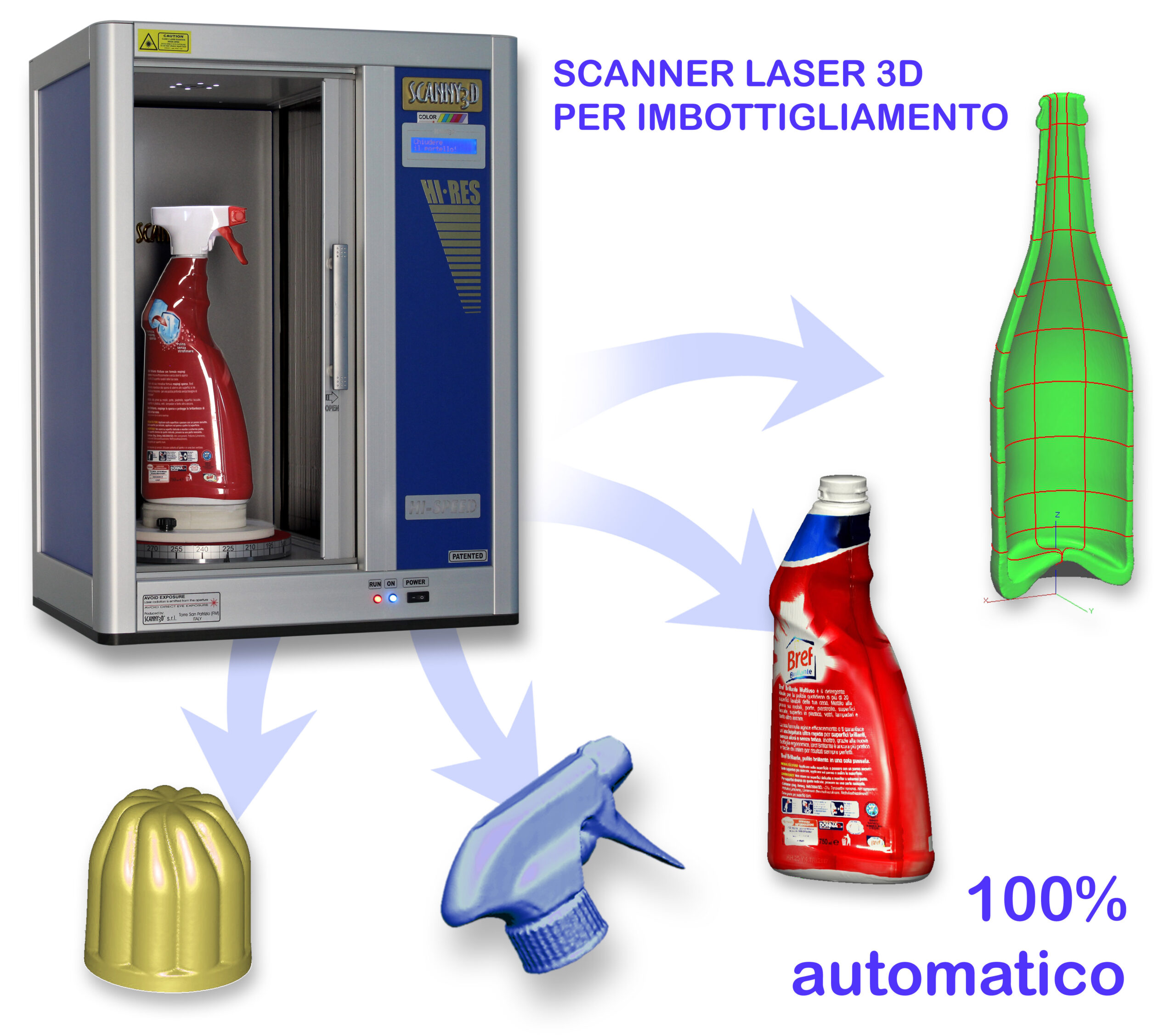 Scanny3D presenta una nuova versione dello scanner laser 3D rotativo, rilasciata di recente, che si è arricchita di ulteriori funzionalità ideate specificatamente per il settore packaging/imbottigliamento. I recenti miglioramenti hardware apportati allo scanner laser 3D hanno permesso di incrementare notevolmente la qualità delle superfici acquisite, oltre alla maggiore accuratezza di misura e all’aumento della velocità di scansione.