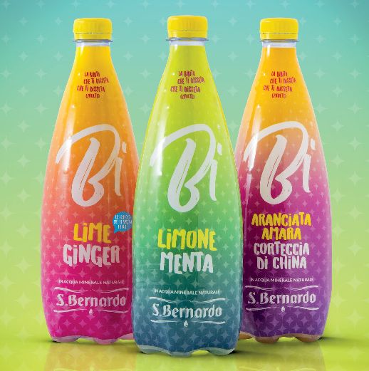 Con S.Bernardo “Ci bevo doppio” recita il claim. “Bi” significa doppio sapore, ma anche binomio di frutta e molto altro. Grazie alle bottiglie da 75 cc, formato ideale per un consumo in compagnia, le bibite “Bi” non perdono la loro frizzantezza, rendendo più allegro ogni momento da passare insieme. Briosa freschezza trasmessa anche dal packaging accattivante e innovativo, frutto di una rivisitazione delle eleganti bottiglie “Gocce” firmate da Giorgetto Giugiaro, che per “Bi” diventano colorate e divertenti.