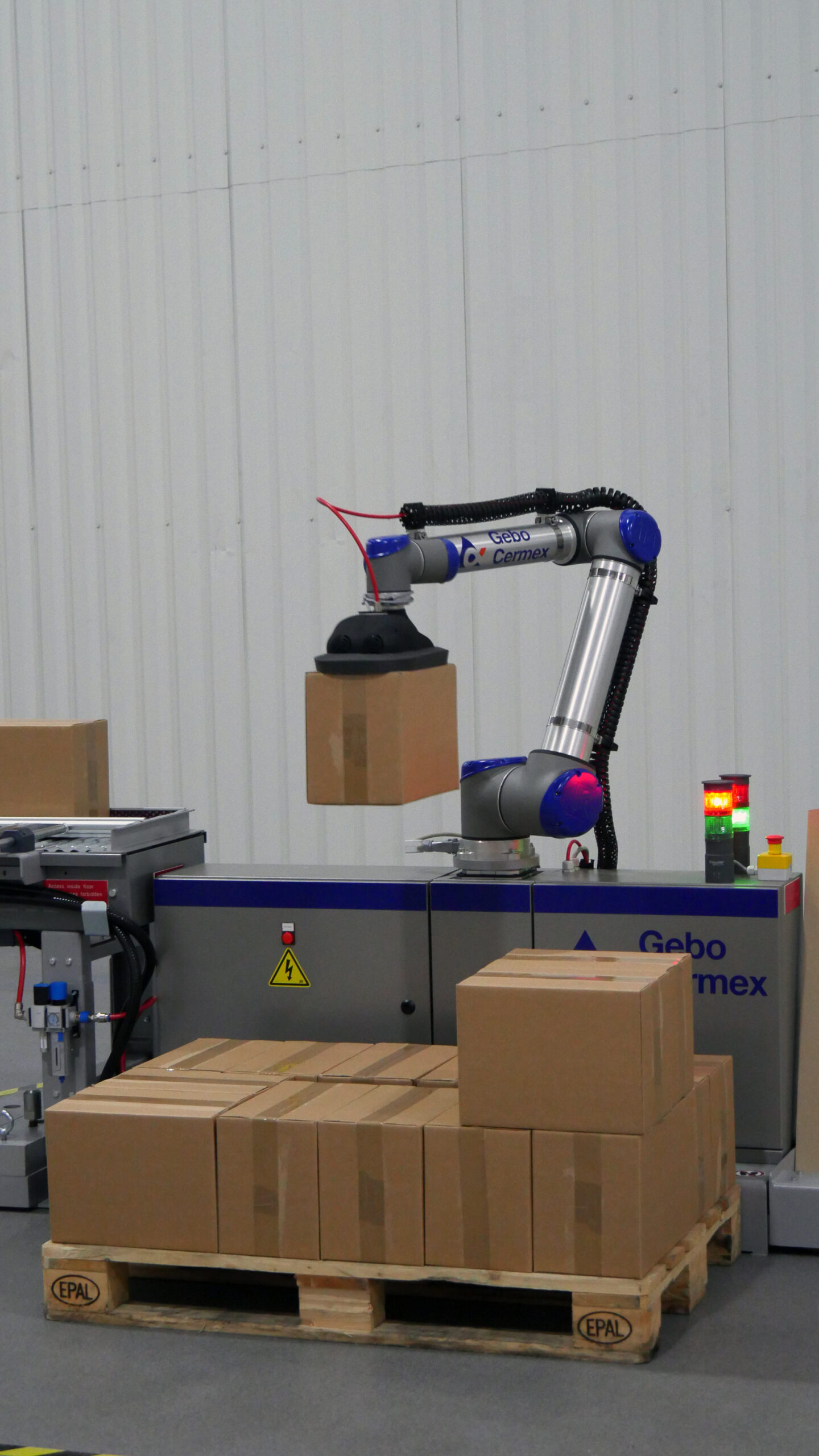 L’integrazione di soluzioni cobotiche aumenta l’efficienza e l’affidabilità delle linee di produzione migliorando le condizioni di lavoro e consentendo agli operatori di gestire attività a più alto valore aggiunto, in un ambiente di lavoro sicuro. Inoltre, grazie a elevati livelli di automazione, riduce al minimo i tassi di errore. Gebo Cermex CoboAccess™_Pal sfrutta tutti questi vantaggi, insieme a maggiori compattezza e flessibilità. Questo robusto palettizzatore cobotico è particolarmente adatto per le applicazioni a bassa velocità e sottolinea l’impegno dell’azienda ad aiutare il comparto manifatturiero nel cogliere le opportunità offerte dall’industria 4.0. CoboAccess_Pal è progettato per gestire contenitori RSC e fardelli: ultra-compatto e senza fili, si adatta perfettamente alle esigenze di ambienti di produzione ad alto tasso di complessità, in cui l’affidabilità è la chiave di volta. Grazie agli elevati standard di sicurezza e industriali secondo cui è stato disegnato, CoboAccess_Pal è capace di garantire una maggiore qualità e stabilità dei pallet, fondamentale per il trasporto uniforme degli stessi lungo la catena di approvvigionamento. Per offrire massima protezione all’operatore e totale cura dei prodotti, la movimentazione delle scatole avviene sempre al di sopra del nastro trasportatore o della stazione pallet, così che non cadano mai a terra o sul personale. L’estrema sicurezza di CoboAccess_Pal è stata certificata da Apave, in aggiunta alla piena conformità della soluzione alla Direttiva Europea Macchine 2006/42/CE.