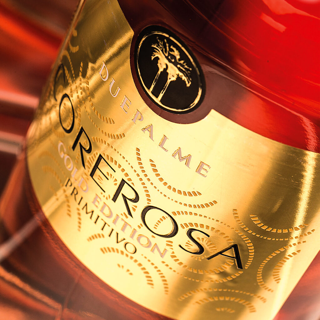 “La bellezza da sola basta a persuadere gli occhi degli uomini, senza bisogno d’oratori”. Stando alle parole di Shakespeare, potremmo non scrivere più nulla. Si potrebbe mettere la foto di un’etichetta che ha rapito gli occhi di migliaia di persone e non aggiungere altro. Però non si renderebbe merito al lavoro di chi ha contribuito alla sua bellezza. Parliamo della nuova bottiglia del Corerosa di Cantine Due Palme, con un’etichetta che riesce a raccontare una storia. Ecco perché la cantina di Cellino San Marco, guidata dal Presidente-Enologo Angelo Maci e dal Direttore Generale Avv. Assunta De Cillis, ha affidato la sua etichetta nelle mani di UPM Raflatac. Il risultato è stato eccezionale. «Sono stato molto contento di ospitare nel nostro stand la Gold Edition del Corerosa – ha detto Stefano Pistoni, Business Development Manager di UPM Raflatac –. Un vino straordinario, vestito con carta PP Double Gold, che è un film di polipropilene estremamente brillante, un oro molto accattivante. E questo dona alla bottiglia un look eccezionalmente bello e piacevole da guardare».