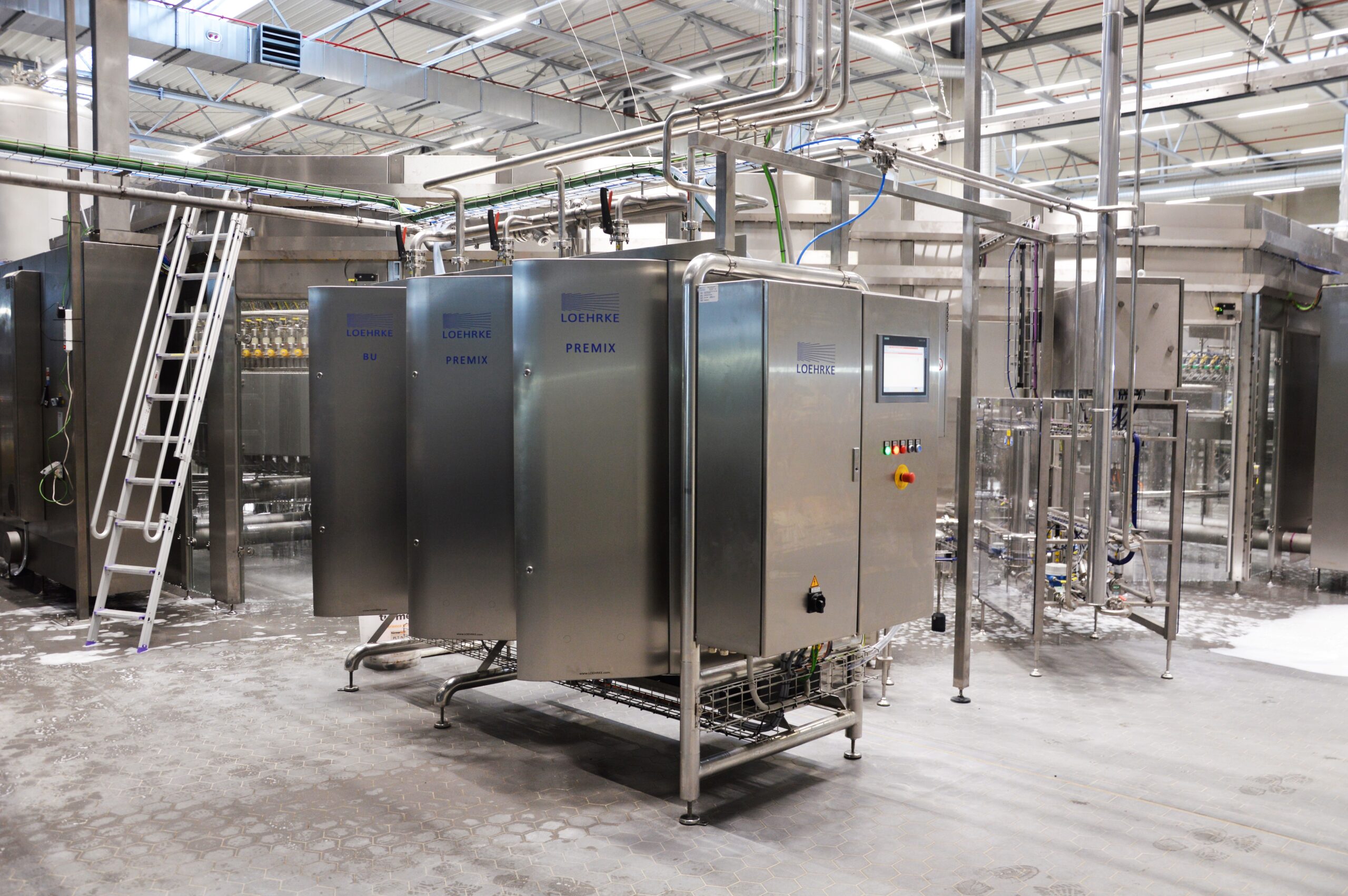 I sistemi LOEHRKE per la sanificazione automatica possono gestire anche tutte le fasi di sanificazione manuale, quando richiesto. In un impianto birra, inaugurato di recente nel nord della Germania, al fine di servire efficacemente tutte le aree sensibili dell’impianto, LOEHRKE ha combinato il suo più avanzato sistema per la sanificazione MULTIDOSING, in grado di gestire in parallelo differenti segmenti, con i sistemi di cleaning manuale MFI/MFU e PREMIX. Progettate secondo le linee guida EHEDG, le stazioni LOEHRKE si contraddistinguono per la caratteristica linea arrotondata e possono essere combinate tra loro in maniera semplice ed efficace grazie a rack modulari. LOEHRKE è stata inoltre incaricata della progettazione dei sistemi di dosaggio dei prodotti di sanificazione nella chemical-room, situata in un locale separato dall’impianto di produzione.