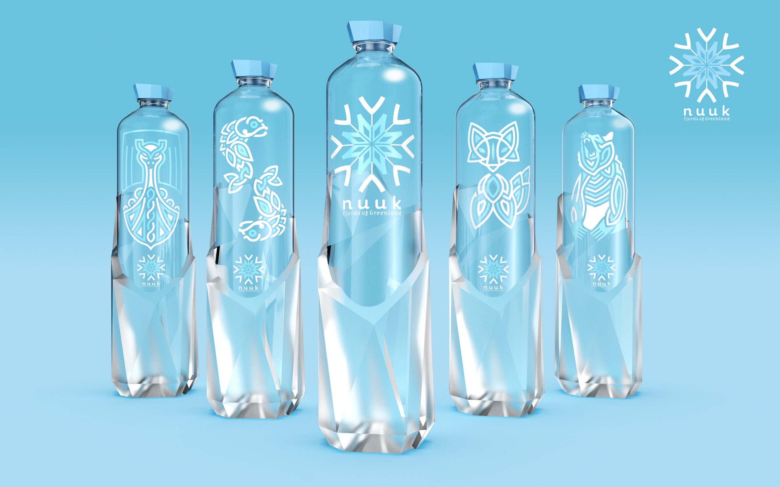 Gli art designer di Sidel hanno creato un nuovo concetto di bottiglia che trae ispirazione dalla purezza del ghiaccio e delle sue formazioni. Il brand NUUK deriva dal nome della capitale della Groenlandia e dei fiordi che l’hanno resa celebre. Lo slogan “Frozen, Authentic, Unique” mette in luce le caratteristiche del brand, strettamente legate all’acqua e alle sue proprietà. NUUK è un contenitore trasparente realizzato al 100% con PET riciclato (rPET) ed è stato concepito per confezionare acqua premium di alta qualità proveniente dai fiordi.