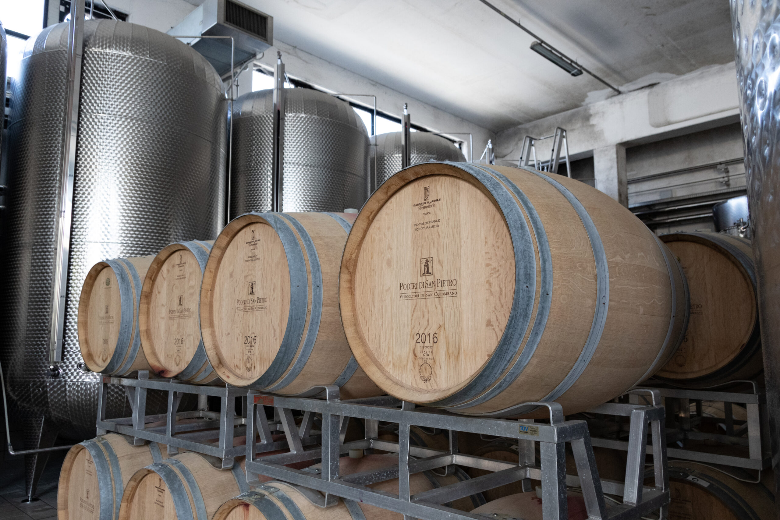 «La possibilità di godere di una capacità decisionale diretta e senza intermediari ci ha consentito, in poco tempo, di organizzarci al meglio per essere presenti sul mercato internazionale – spiega Giuliano Toninelli, CEO di Poderi San Pietro –. La nostra forza lavoro conta oggi su nove collaboratori, figure professionali che operano in azienda con grande dedizione: questo è certamente uno dei punti di forza di Poderi San Pietro, insieme agli impianti tecnologici di cui disponiamo. Se, dal lato umano, i nostri valori si basano sull’appartenenza, sulla condivisione e sul lavoro di squadra, dal punto di vista del prodotto vino crediamo fermamente nel rispetto dell’ambiente, della natura e del territorio in cui operiamo». Da diversi anni, infatti, Poderi San Pietro applica un’attenta gestione agroambientale in vigneto, riducendo l’utilizzo di trattamenti e prodotti chimici e implementando l’impiego di strategie naturali di difesa della vite contro le malattie. Sulle coperture dei fabbricati, inoltre, è stato installato un impianto fotovoltaico, che, dal punto di vista del fabbisogno energetico, rende quasi autonoma l’impresa, impegnata anche in una politica di riduzione dei consumi di energia nell’ambito del management aziendale. La cantina, in parte interrata e sempre aperta al pubblico per degustazioni e visite guidate, conta oltre 70 vasche termocontrollate in acciaio e una piccola produzione di vino in anfora, iniziata nel 2015. Per i vini più pregiati – le riserve, ma anche il Rosso di Valbissera – l’affinamento avviene in 120 barriques di rovere francese nei sotterranei della struttura, a temperatura e umidità controllate, e va dai sei mesi ai quattro anni. Diverse sono le moderne tecnologie a cui l’azienda si affida, tra le quali Wine Scan, uno strumento di analisi chimica che, utilizzando un piccolo campione di vino, permette di ottenere importanti dati utili all’enologo al fine di valutare appieno la qualità del prodotto. Il rischio di ossidazione dei vini, inoltre, viene evitato attraverso il ricorso a un generatore di azoto che consente di saturare le vasche in acciaio, creando un ambiente interno privo di ossigeno.