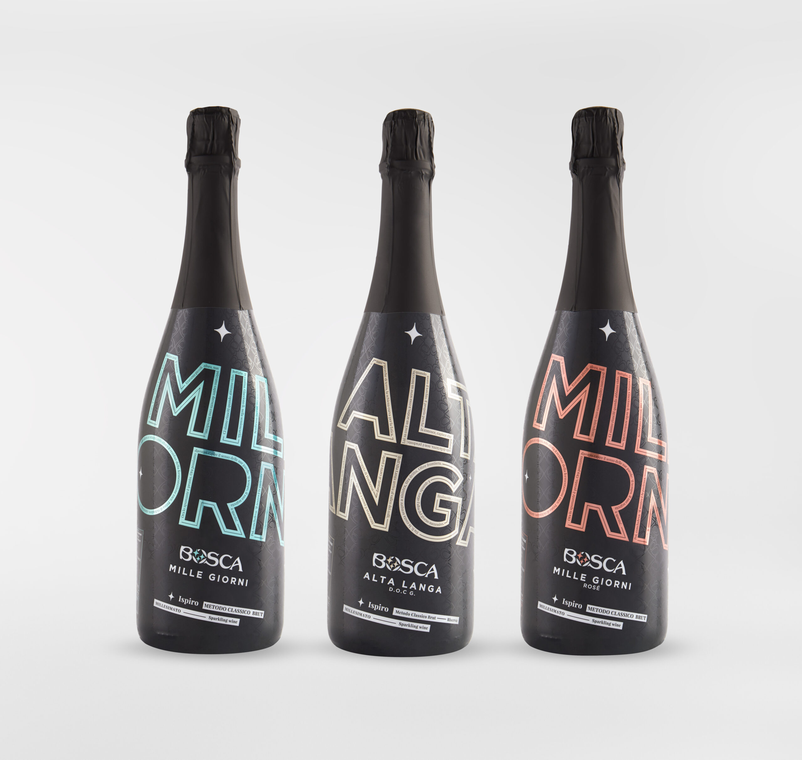 Bosca amplia il presidio del canale Ho.Re.Ca con l’inserimento di una nuova linea composta da tre vini spumanti Metodo Classico parte della collezione “Ispiro” (Alta Langa D.O.C.G., Mille Giorni, Mille Giorni Rosè) e da quattro vini spumanti Metodo Charmat parte della collezione “Esploro” (Piemonte D.O.C., Piemonte D.O.C. Pinot Nero Ros , Asti D.O.C.G. e Asti D.O.C.G. Secco).