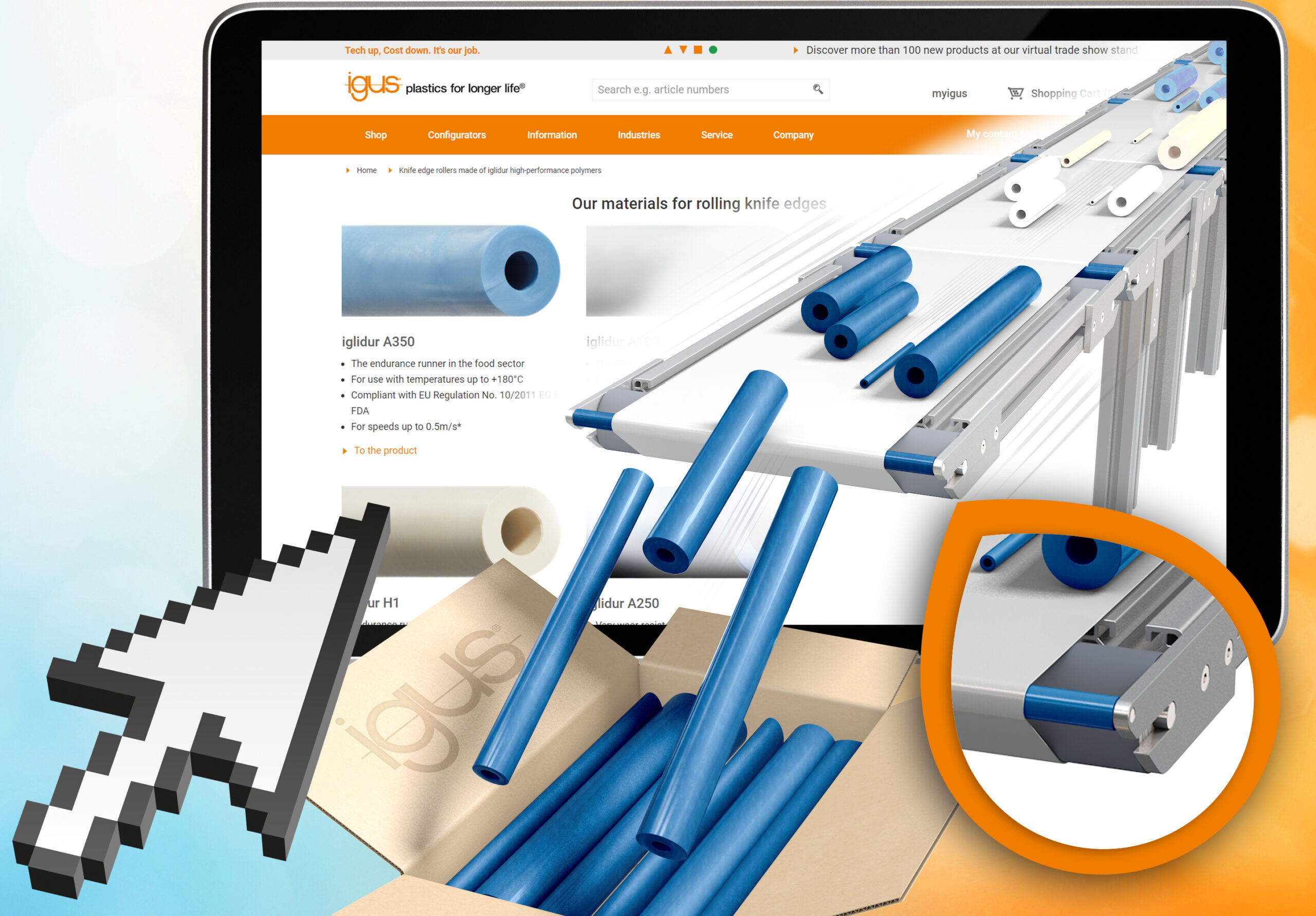 Per permettere agli utenti di procurarsi questi rulli di guida ancora più rapidamente, igus li ha resi disponibili direttamente nello shop online. Tra i rullini in polimero ad alte prestazioni disponibili per l’acquisto nello shop online, ci sono anche quelli in materiale blu iglidur A250. Questo speciale polimero si contraddistingue per la sua resistenza all’usura a velocità elevate del nastro e soddisfa i severi requisiti di igiene del regolamento FDA e delle normative UE10/2011.
