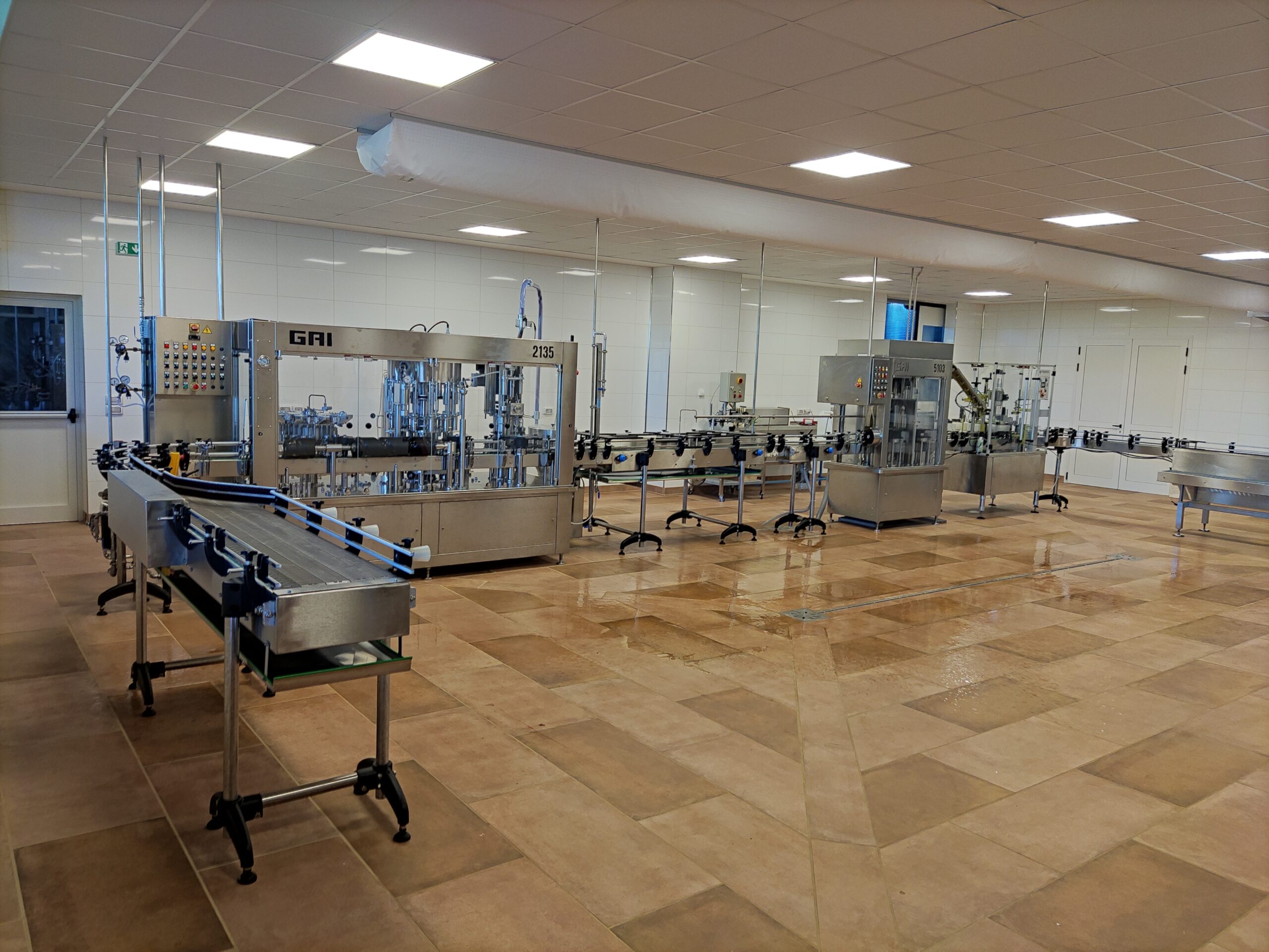 Il nuovo edificio è completamente interrato sul lato Nord e interrato per metà dell’altezza sugli altri tre lati; il tetto risulta coperto da un metro di terreno su cui sono coltivati ortaggi, frutti ed erbe aromatiche, il che contribuisce all’isolamento della cantina sottostante, la cui quota media interna è di 7 metri. Questa altezza è stata sfruttata per intero nella bottaia, nel magazzino dove affinano i vini in bottiglie nude e in quello dei vini confezionati, mentre è stata divisa in due nella zona dei locali imbottigliamento, laboratorio e magazzino ricambi (in basso) e vinsantaia (in alto); anche nel locale vinificazione, parzialmente, i 7 metri risultano separati da una passerella in acciaio posta sopra i serbatoi, in linea con l’area esterna di ricevimento uve: da questa zona esterna, in fase di vendemmia, gli operatori possono accedere e operare agevolmente, anche per gravità, al fine di immettere i mosti o il pigiato nei serbatoi. Diversi igloo di cemento rendono possibile la delimitazione di un vuoto di 60 cm sotto tutta la pianta della cantina, che risulta, così, “sospesa”: questo spazio è a diretto contatto con l’aria proveniente dal lato Sud e l’apertura interessa tutta la lunghezza perimetrale degli altri lati, in modo da creare un movimento d’aria continuo tra esterno e interno, funzionale a climatizzare i corridoi che separano i diversi reparti. Tutti i muri presentano caratteristiche adeguate di coibentazione, le quali scongiurano le dispersioni termiche, così come le porte e le ampie vetrate della cantina, queste ultime costituite da doppi vetri a bassa trasmittanza in grado di limitare la trasmissione di calore. La compartimentazione, studiata ad hoc, consente inoltre un controllo differenziato e ottimizzato delle temperature degli ambienti, tra i quali si distinguono ampi locali tecnici e magazzini che assicurano visibilità e facilità di accesso a tutta l’impiantistica di cantina.
