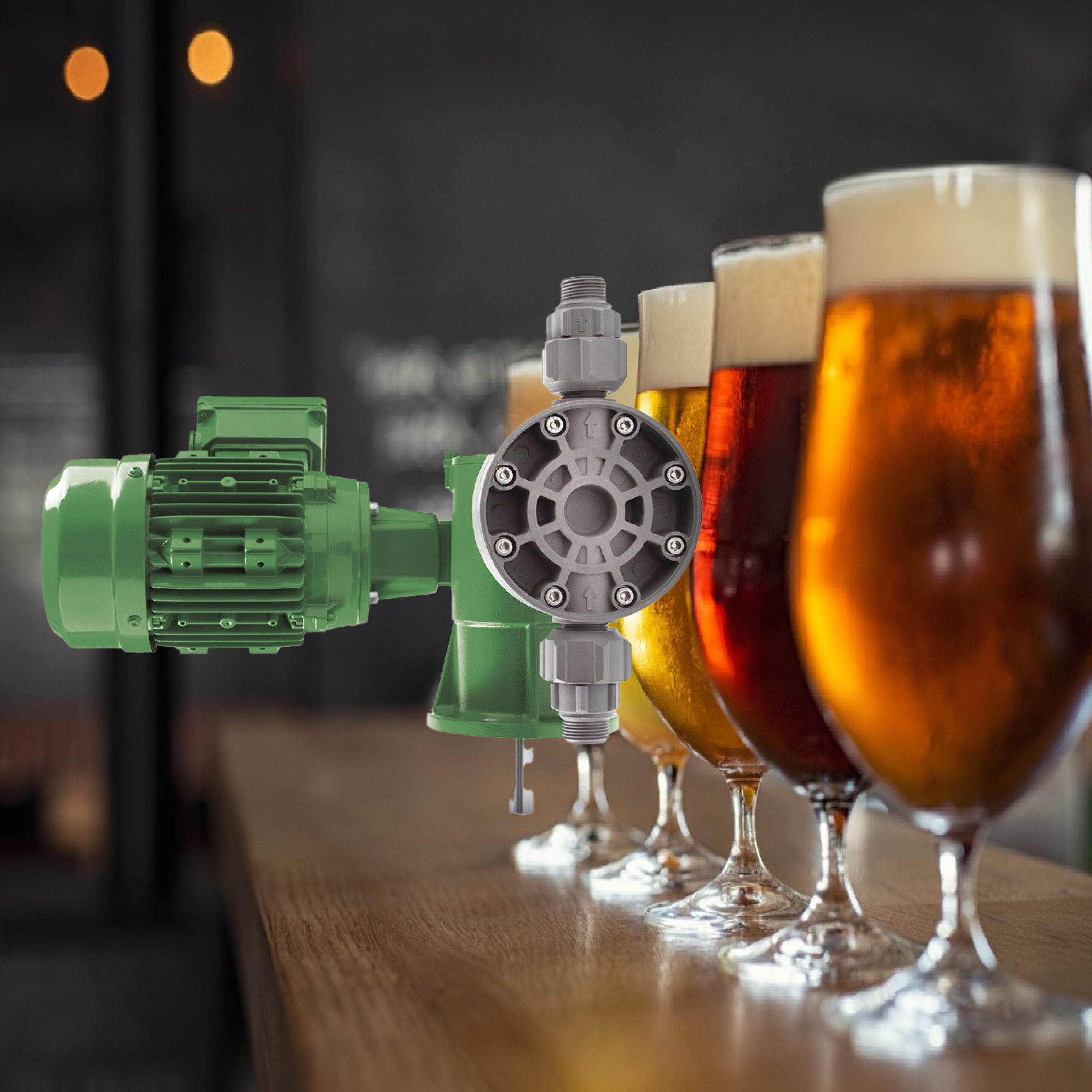 Le pompe possono essere utilizzate anche nei processi di filtrazione per la produzione della birra e del vino dosando con precisione la farina fossile. Le pompe più indicate per questa applicazione sono le DV101 che permettono la massima adattabilità alle esigenze del settore delle bevande sia nelle prestazioni che nella configurazione di montaggio, permettendo un posizionamento del motore flessibile e modificabile anche successivamente. Tutte le configurazioni sono disponibili come forniture standard, senza incidenza sui tempi di consegna. La soluzione è integrabile con testate a pistone per consentire portate e pressioni elevate.