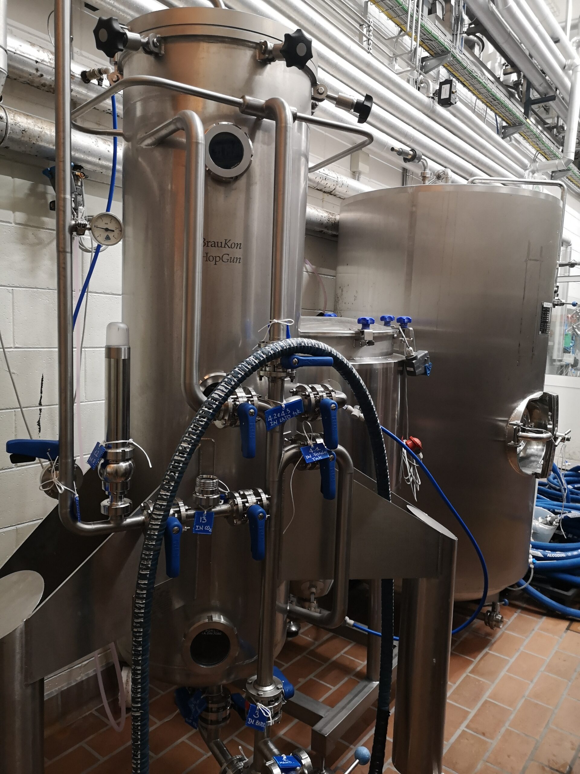 La CO2 di fermentazione viene aspirata da una pompa, compressa, passata attraverso una serie di filtri che la puliscono ed essiccano, e infine stoccata in un serbatoio all’esterno del birrificio, collegato col resto dell’impianto. «Dai calcoli stechiometrici che abbiamo fatto, ci risulta che dovremmo averne più che a sufficienza per le nostre necessità».