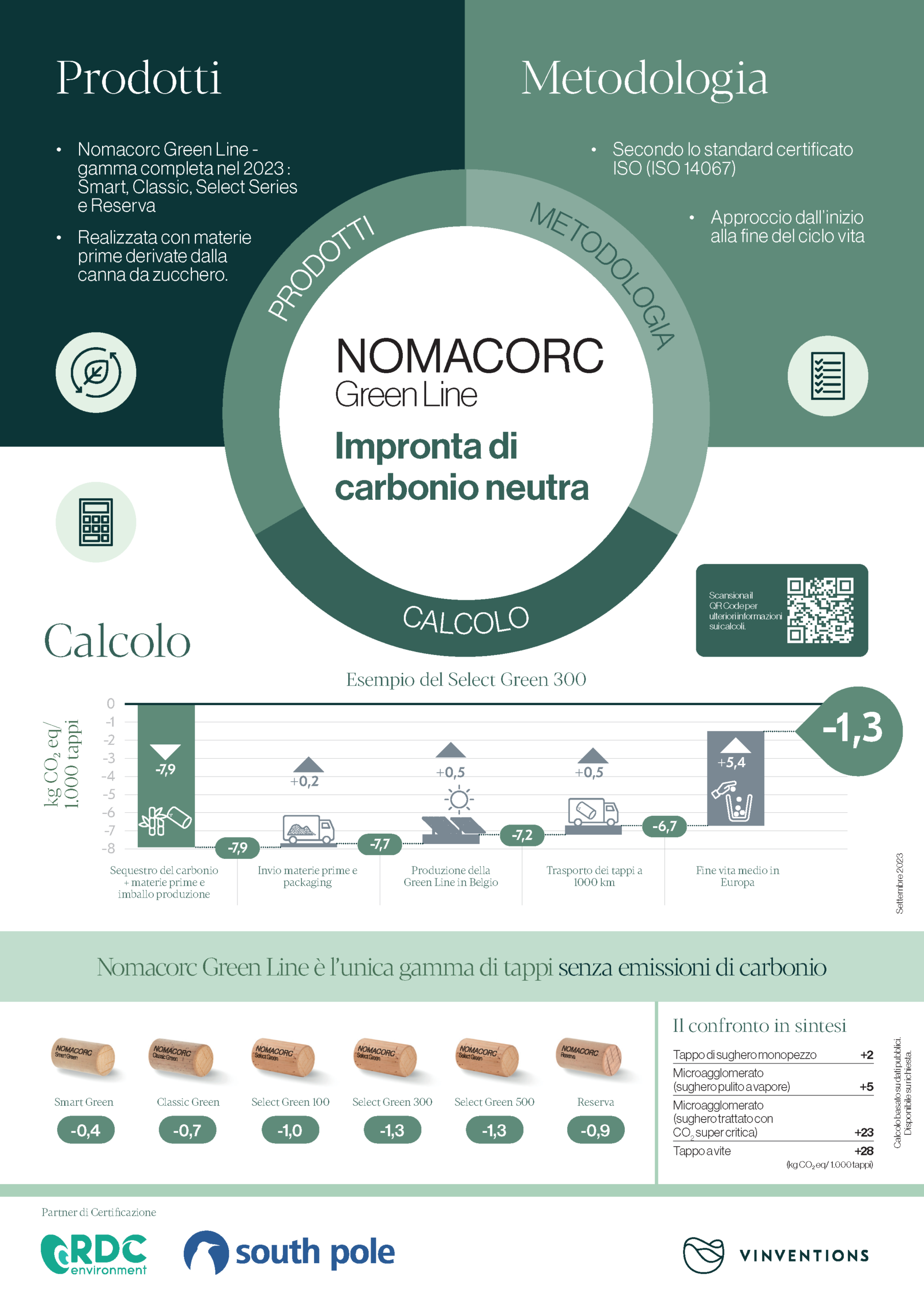 Vinventions ha scelto RDC Environment per il calcolo dell’impronta di carbonio della Nomacorc Green Line secondo la norma ISO 14067:2018. Fondata nel 1992, RDC vanta un team di 25 ingegneri ed economisti, tutti entusiasti sostenitori dello sviluppo sostenibile e specialisti nell’analisi del ciclo di vita.