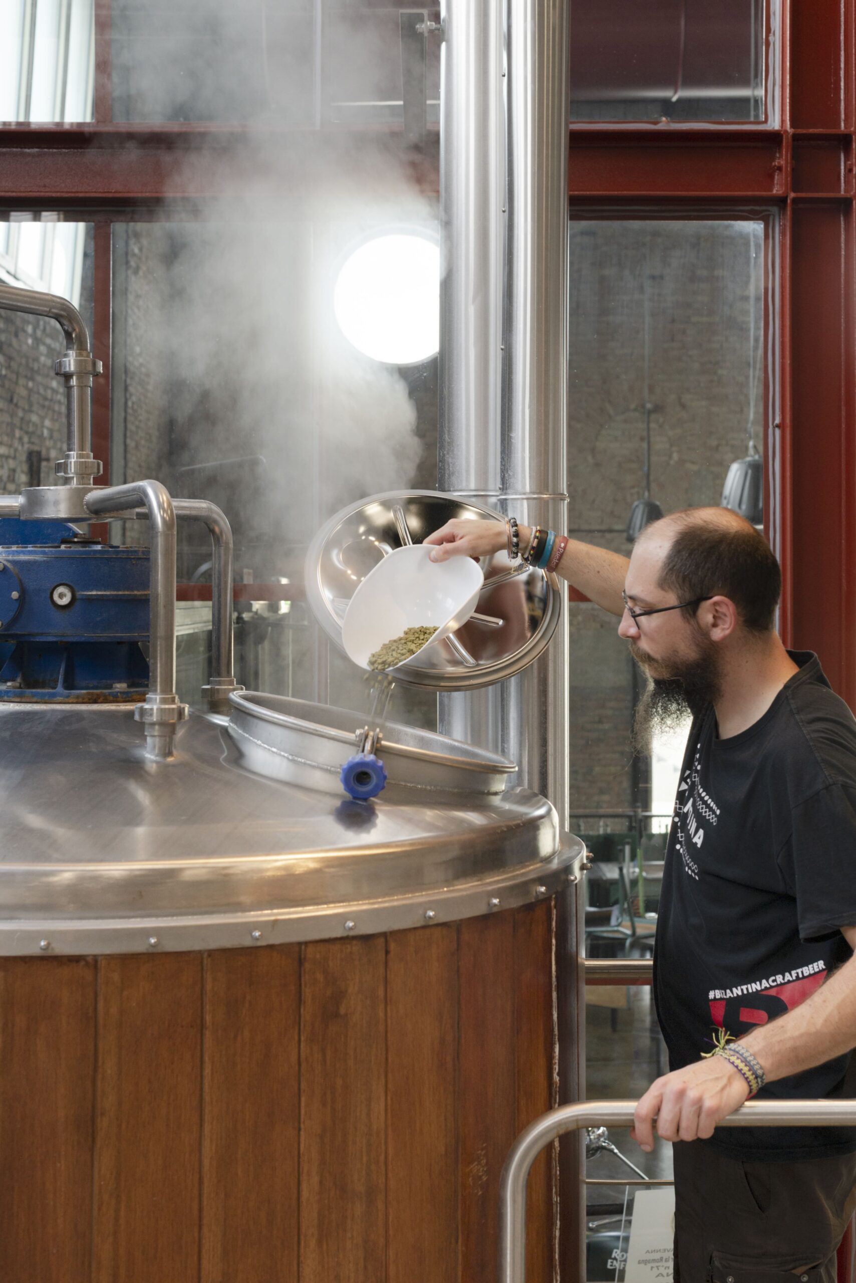 «Darsenale è un ex magazzino industriale restaurato che dal 2019 abbiamo preso in affitto. È questo il quartier generale dove nasce Birra Bizantina e dove siamo liberi di creare, reinterpretare e confezionare in fusti e bottiglie le birre che più ci rappresentano direttamente nei nostri impianti di produzione a vista, situati al centro del locale. Quando il progetto è iniziato, durante il 2020, il nostro birrificio era composto da una sala cottura a due tini da 1200 litri e 4 fermentatori. Oggi abbiamo una capienza totale della cantina da 154 ettolitri, composta da due fermentatori non isobarici da 16 ettolitri, due fermentatori non isobarici da 31 ettolitri e infine l’ultimo paio di fermentatori, questa volta isobarici, da 30 ettolitri. Amiamo il nostro lavoro, così come amiamo far bere al meglio quello che ci piace creare. Per questo scegliamo solo le migliori materie prime ed eseguiamo un controllo scrupoloso di ogni fase di produzione. Nessun processo è industriale. Non utilizziamo mai nessun colorante o conservante. Ci mettiamo solo tempo, pazienza e passione. E tutto il nostro stabilimento è quanto più possibile sostenibile e sostenuto da energia verde, prodotta per mezzo di pannelli solari, recupero dell’acqua e utilizzo di fusti lavabili in acciaio. Affiancati dai migliori fornitori italiani, scegliamo le materie prime che ci soddisfano maggiormente in termini di qualità e risultato finale. Ad esempio, i malti che vengono utilizzati nelle nostre ricette sono prodotti presso le migliori malterie europee di Germania e Belgio. Per i luppoli, ci riforniamo dai coltivatori europei, inglesi e americani per ottenere il massimo delle caratteristiche di ogni varietà utilizzata. Così come poniamo grande attenzione nello scegliere i lieviti più adatti ad ogni stile di birra, utilizzando temperature di fermentazione che fanno sì che il prodotto finito sia conforme alle nostre aspettative. Infine, controlliamo scrupolosamente ogni fase della lavorazione, monitorando quotidianamente la fermentazione del mosto, il pH e le temperature di mantenimento dei fermentatori fino alla densità finale. Per rendere visibile tutto questo anche ai nostri consumatori, infine, due volte al mese (di lunedì, con prenotazione) apriamo le porte del nostro birrificio per una visita guidata condotta dal nostro mastro birraio Francesco, che spiega in ogni dettaglio tutto quello che c’è da sapere su Birra Bizantina e la sua produzione. Un’esperienza in grado di avvolgere tutti i sensi durante la quale si ha modo di confrontare gli odori dei luppoli e cogliere le sfumature dei malti tostati, oltre ad ascoltare il racconto di come le nostre birre vengono pensate e nascono per essere servite e gustate al meglio. Il tour ovviamente non può che concludersi al bancone del nostro brewpub, con una bela degustazione delle nostre birre appena spillate e accompagnate da un tagliere con le eccellenze del territorio».