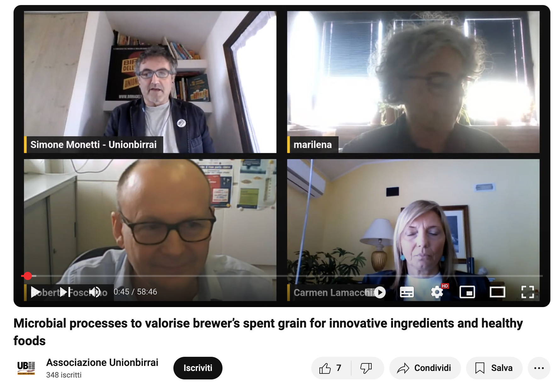 Durante il webinar, intitolato “Processi microbici per valorizzare le trebbie di birra come ingredienti innovativi e alimenti salutari”, sono state presentate tecnologie innovative per trasformare le trebbie, tipico residuo della produzione birraria, in ingredienti funzionali attraverso fermentazione microbica e trattamenti sostenibili di essiccazione a microonde, con minore impatto ambientale ed economico rispetto ai metodi tradizionali.