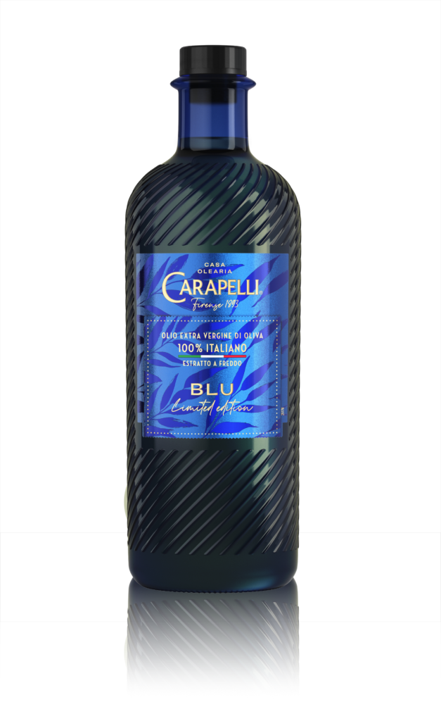 Carapelli lancia CarapelliBlu, un prodotto unico che valorizza l’olio extravergine di oliva 100% italiano, introducendo un elemento di grande innovazione all’interno della categoria.