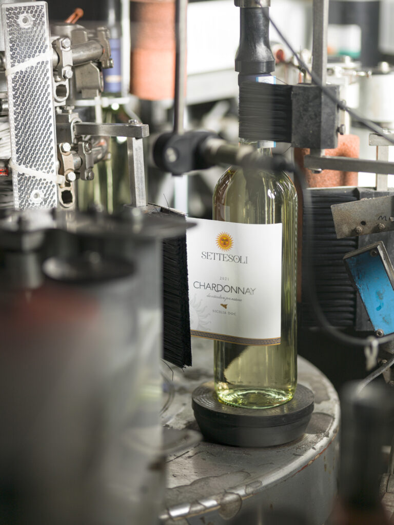 Il moderno impianto di imbottigliamento di Cantine Settesoli a Menfi, dove automazione e controllo qualità garantiscono vini costanti e tracciabili per i mercati internazionali