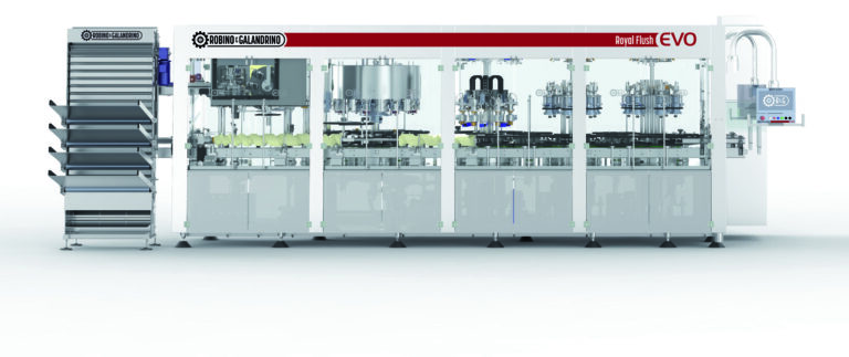 Robino & Galandrino perfeziona i sistemi di capsulatura universale con la gamma Royal Flush EVO. Progettata per capsulare sia vino tranquillo sia spumante, il sistema riduce drasticamente i tempi di cambio formato: distributore capsule automatizzato (settaggi Ø e H richiamati da ricetta) stelle a pinze o a geometria variabile motorizzata e memorizzata a ricetta. Sezione…