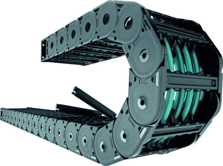 Leggere, silenziose e con un ampio spettro applicativo, le catene portacavi Uniflex Advanced di Kabelschlepp hanno forme esecutive con traversini apribili sul lato interno o esterno, traversino10 RMA, maglie in un unico pezzo (forma 020), molteplici opzioni di suddivisione dei cavi, semplice fissaggio dei separatori, superfici laterali antiusura e un rapporto favorevole fra larghezza interna…
